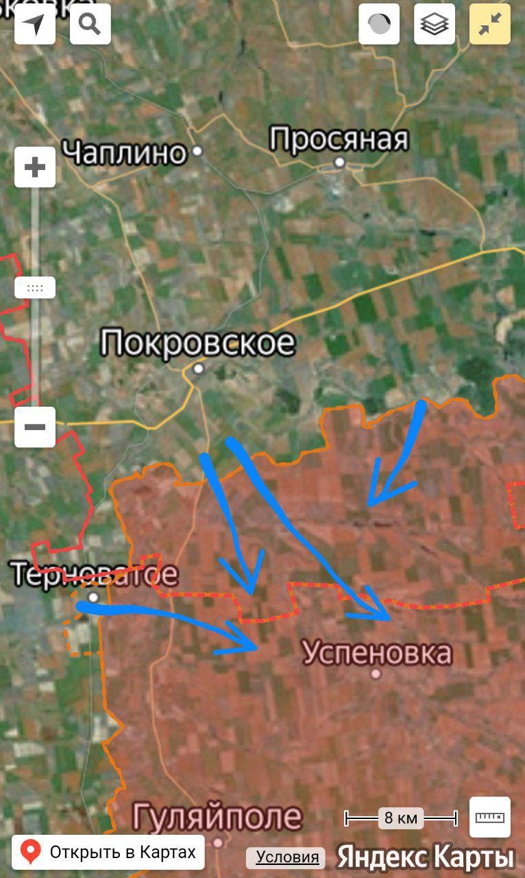 Now in semi seriousness the red dot with the little outline of the town is Gulyapole. The squiggly black line underneath орехов is very, very, very roughly where the Ukrainians main/strongest defenses are in Zaporozhe Oblast. As you can see this makes Gulyapole strategically important strictly in theory because in theory Russia could totally outflank the main Ukrainian defensive belt in Zaporozhe Oblast from the east and roll up the AFUs strongest positions all the way to capital of the Oblast where you see Запорожье on the left side of the map. If the Russian Armed Forces were capable of doing that they would be in striking distance of Dnipropetrovsk before too long which is where you see Днепр on the map just north of Zaporozhe. But that is all fan fic. A town, object, etc can only be “strategically important” when there is a strategy for winning the war in the 1st place besides “muh attrition”. Furthermore, the material and human resources to execute said strategy need to be on hand and as of now Russian Troops don’t even have comms at the tactical level nor do they significantly outnumber the Ukrainians man for man.