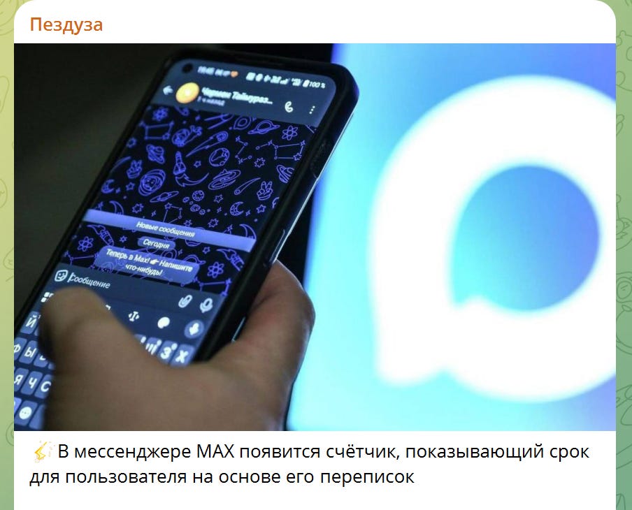 The Government was already starting to force Students and Parents to use MAX back in the Summer of Last Year and that trend is still ongoing in Russia, that and the new Telegram Restrictions are part of the same program. Helping out Kiriyenko the Younger and his friends and family by raising the value of their VK/MAX shares.